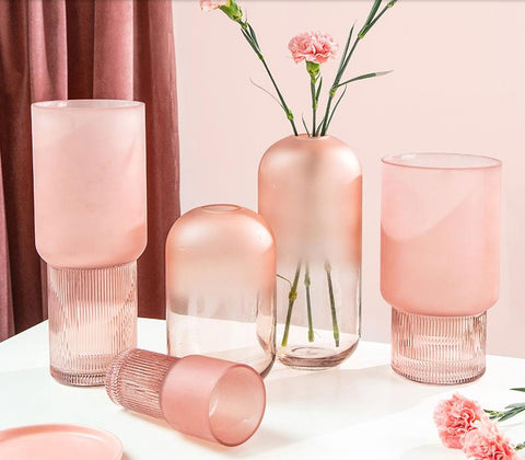Grand vase en verre rose