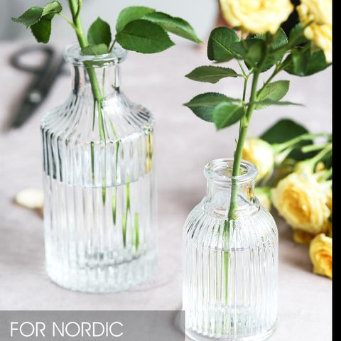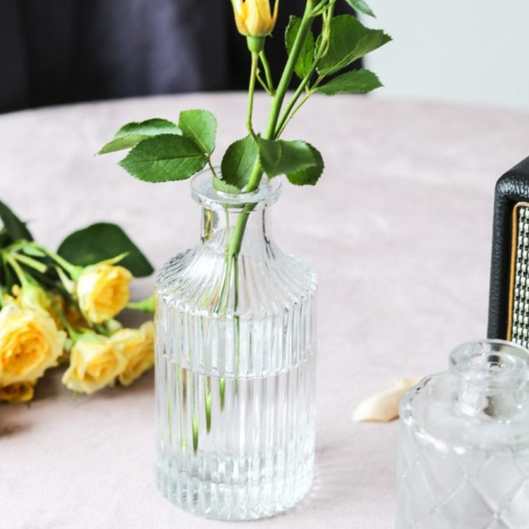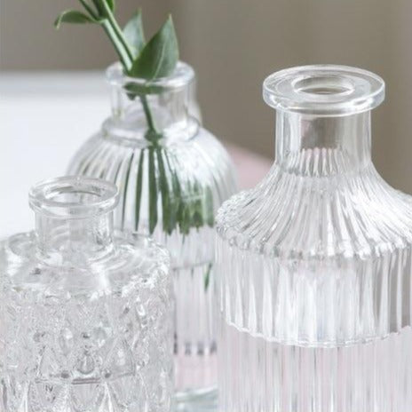 Ces jolis Vases en verre tirent tout leur charme de leur format flacon.