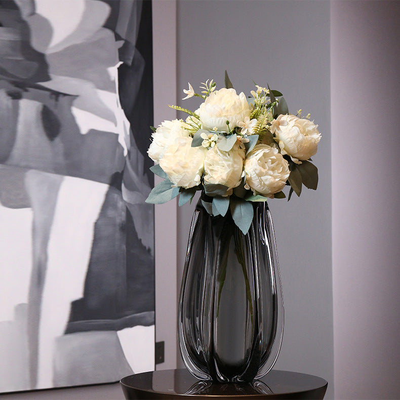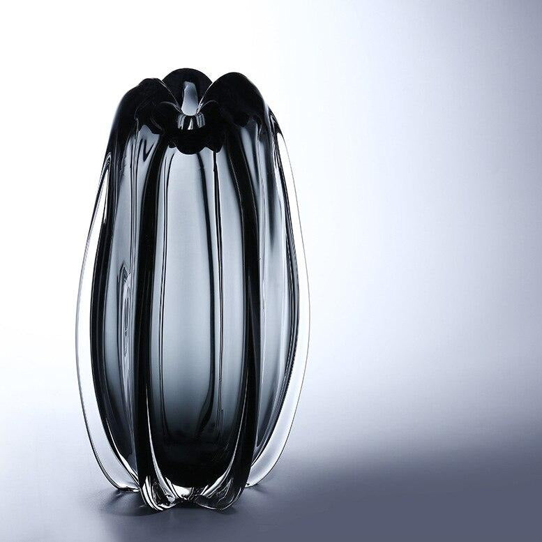 Ce Vase en verre noir transparent nous fait voyager au travers de ses formes sublimes.