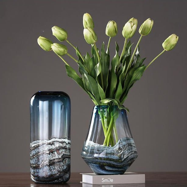 Ce vase en verre soufflé est le fruit d'un travail manuel et appliqué