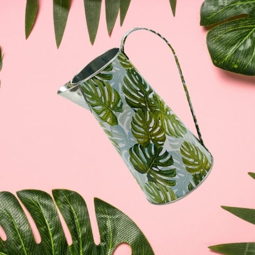 Ce joli Pichet regadera en zinc est recouvert d'un joli motif à feuilles.